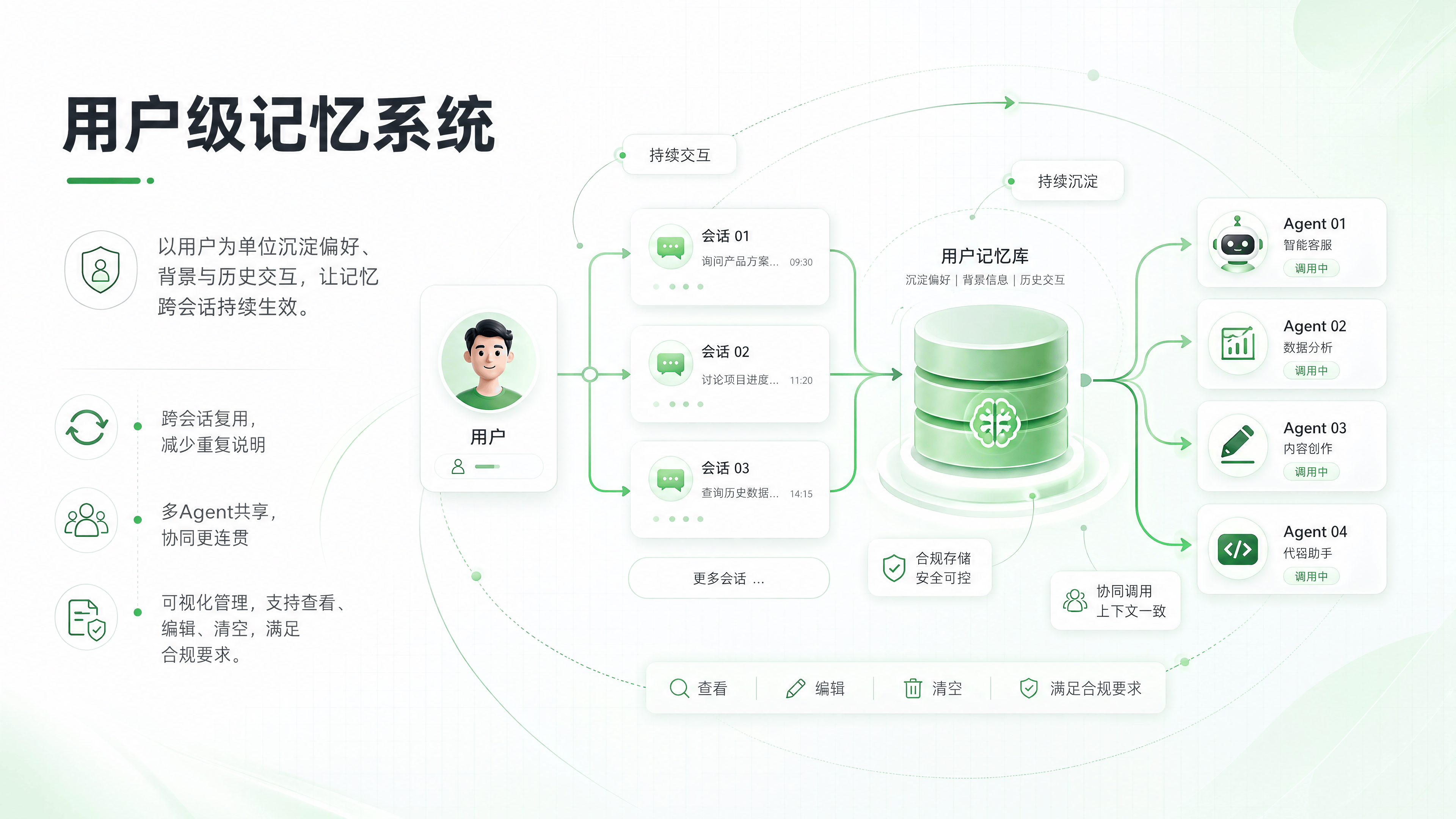 合规控制:支持手动编辑和删除记忆,满足 GDPR 等数据合规要求。